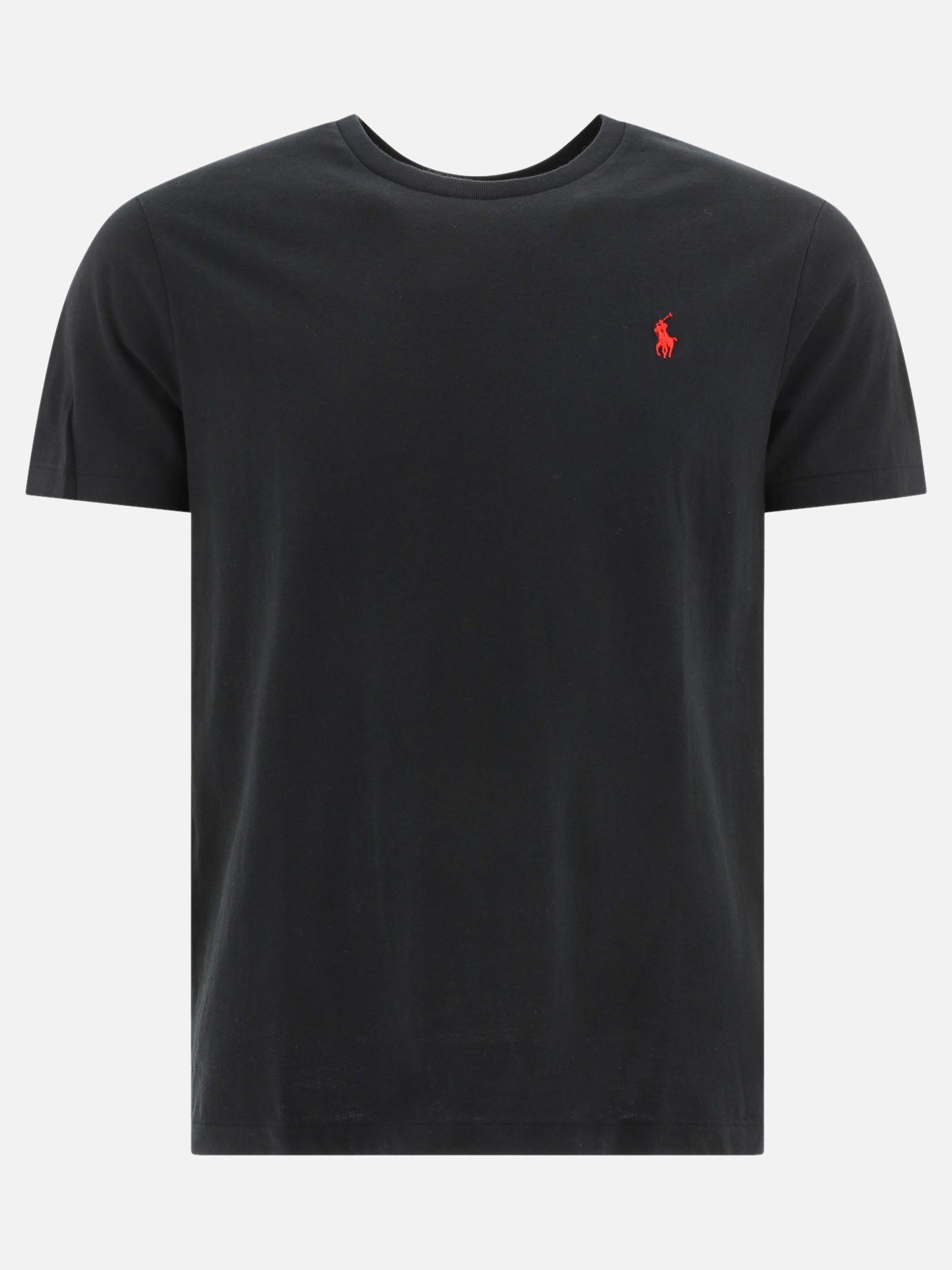 Polo Ralph Lauren logo crewneck T-shirt made from cotton jersey. The construction features a slightly fitted silhouette at the chest and waist, with a 45.1-cm shoulder, 99.1-cm chest, and 69.8-cm length for size M. The fabric has been previously washed to achieve a worn-look surface. Ribbed crew neck, linear seam construction and smooth finish.