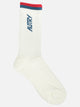 Autry logo sports socks made from a blend of cotton, polyester and spandex. Structure features ribbed cuffs, with reinforced toe, sole and heel for durability. Silhouette follows the anatomical shape of the foot. Contrasting jacquard elements inserted on both outer side and sole. Construction provides support by incorporating functional materials.