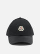 Moncler logo baseball cap with six-panel construction and contoured construction. The curved visor enhances sun protection and contributes to the model's streamlined silhouette. The Moncler logo is applied at the front with embroidered detail. Tone-on-tone stitching and integrated ventilation eyelets define a functional, uniform fit. The back closure is adjustable for fit adjustability.