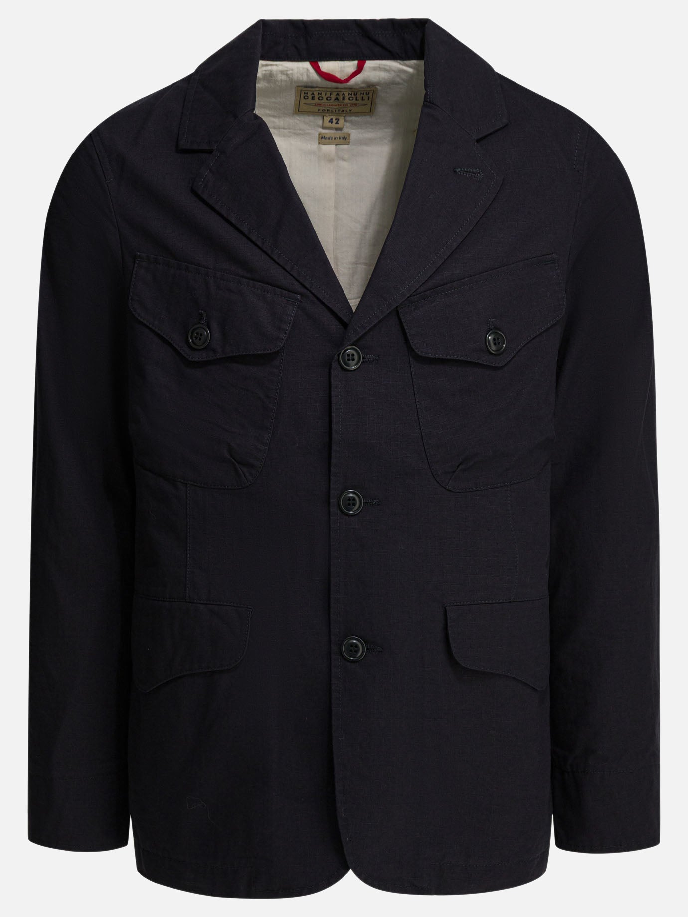 Lightweight "Bush" Manifattura Ceccarelli jacket made of 100% cotton midweight ripstop fabric. The construction features chevron cotton shoulder lining and a straight silhouette. The ripstop construction, achieved by weaving two thicker cotton threads in warp and weft, ensures a small-square pattern. The central closure is three buttons, plus a fourth top button for locking lapels.