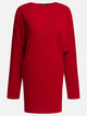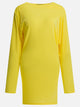 Jacquemus "Mistral" dress made of fluid viscose jersey, constructed with a fitted cut and mini length. The silhouette follows essential lines with a boat neckline and fitted sleeves. The front features round embroidery, while the back features a wide cut-out and a fluid draped panel that creates movement. The construction focuses on a combination of lightweight material and bold structural details.