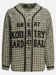 Kapital "Great Kountry" casual shirt with a soft cut and slightly boxy structure, made of patterned tweed fabric with jacquard work. The surface features a three-dimensional texture that emphasizes the handcrafted construction. The design features a classic collar and front button closure finished with contrasting edges. Contrasting applied graphics run across the front, while the cuffs and hem feature ribbed trim.