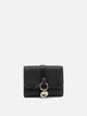 Chloé "Alphabet" wallet, made with a compact trifold structure in grained and polished calfskin, with a lambskin main interior. Features a silhouette defined by sharp lines, designed for essential use and suitable for holding documents and cards. Snap closure, knotted lace details and metal charms with Chloé initials positioned on the front. Interior finished in leather and polyester-cotton blend fabric.
