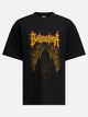 Balenciaga "Big B" crew-neck T-shirt made of softly textured cotton. The oversized construction features dropped shoulders and wide lines, emphasized by worn details along the edges and on the fabric. The front design shows the printed Big B graphic, integrated into the knit construction. The rectangular silhouette provides volume and comfort, while the short sleeve maintains a basic line across the entire surface of the garment.