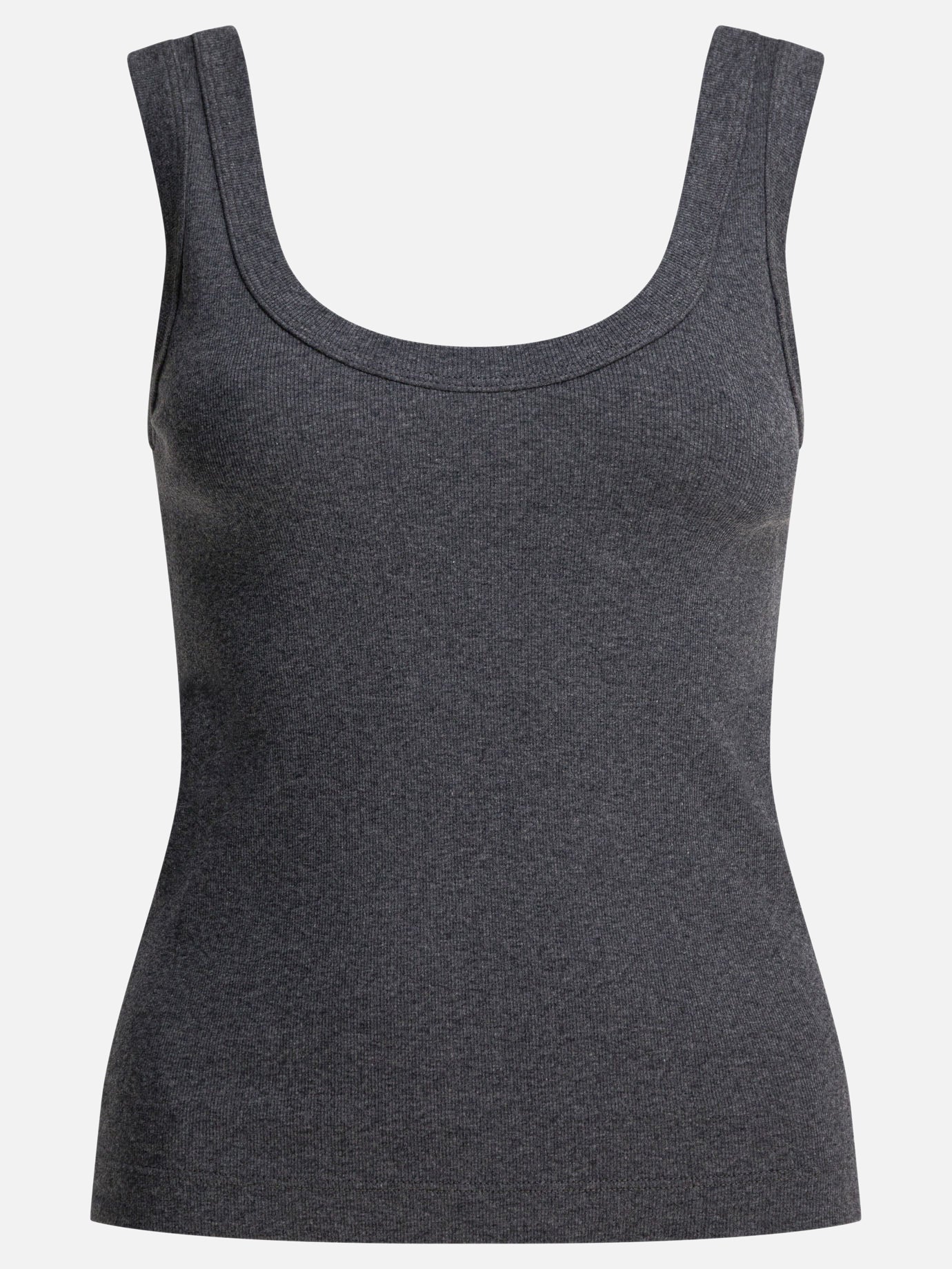 Brunello Cucinelli monile jersey tank top made of lightweight stretch cotton jersey with soft texture and smooth surface. The sleeveless construction and fitted silhouette feature regular volumes, with a wide neckline at the front and back. A nickel-free jewel detail finishes the design, adding a precisely applied metallic element along the hem. Integrated spandex provides flexibility and comfort during wear.