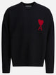 Maglione girocollo "Ami de Coeur" in lana Ami Paris realizzato in maglia jersey di lana merino infeltrita. La tessitura uniforme della maglia conferisce una struttura compatta al capo, con silhouette regolare definita da cuciture lineari sulle spalle e sulle maniche. Il girocollo integra un bordo a costine, mentre la lavorazione a intarsio evidenzia il motivo Ami de Coeur posizionato sul petto. Rifiniture elasticizzate su polsi e orlo completano la costruzione.