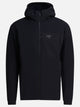 Giacca a vento "Proton" Arc'teryx, realizzata con guscio esterno in nylon Fortius Air 20, caratterizzato da elevata resistenza all'umidità, al vento e all'usura, unito a una fodera traspirante in Toray 20d a trama semplice. L'isolamento Coreloft Compact 80 g/m², composto al 100% da materiale riciclato, garantisce termoregolazione durante attività intense. Silhouette ergonomica con struttura articolata, cappuccio compatibile con il casco e doppi regolatori all'orlo inferiore.