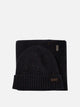 Set berretto e sciarpa "Carlton Fleck" Barbour, composto da un berretto lavorato a costine con orlo risvoltato e una sciarpa abbinata con struttura screziata. La costruzione utilizza una miscela di fibre sintetiche e naturali che contribuiscono alla stabilità della forma e alla resistenza nel tempo. La silhouette segue linee essenziali, con particolare attenzione all'abbinamento delle texture.