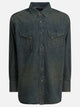 Camicia "Western Double Dye" Beams Plus, realizzata in denim di cotone con costruzione ispirata alle linee della tradizione workwear degli anni '60. Struttura priva di cuciture sagomate in vita, con dettagli che rimandano alle camicie western originali. La silhouette si presenta dritta, senza accentuazione della linea centrale, enfatizzando una costruzione essenziale e robusta.