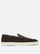 Mocassini in camoscio effetto chevron Brunello Cucinelli, realizzati in pellame scamosciato con superficie a mano vellutata. La tomaia presenta una silhouette classica a taglio basso, caratterizzata da costruzione leggera. Struttura interna con fodera in pelle e bordo rinforzato, studiata per garantire aderenza e stabilità. La suola in lattice naturale aggiunge flessibilità e ammortizzazione, completando la calzatura con una base in gomma resistente.
