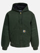 Giacca "OG Active" Carhartt WIP con struttura in poliestere e imbottitura interna in poliestere. La silhouette risulta definita dal cappuccio regolabile tramite coulisse e dalla chiusura centrale con zip a tutta lunghezza. Tasche frontali a marsupio applicate, cuciture visibili lungo il bordo e pannelli sagomati contribuiscono alla costruzione del capo. La superficie ha una finitura liscia e compatta, con dettagli funzionali ed elementi strutturali integrati.