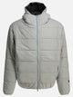 Piumino corto reversibile in nylon Daiwa Pier 39, costruito con tessuto sintetico e struttura imbottita. Il modello presenta una silhouette corta, cappuccio integrato e chiusura frontale a zip. Il materiale esterno in nylon è accoppiato con imbottitura in poliestere, favorendo isolamento e performance. La reversibilità permette una doppia opzione d'uso, mantenendo linee essenziali e cuciture ridotte per una finitura pulita della superficie esterna.
