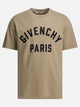 T-shirt "Givenchy Paris" Givenchy in cotone con struttura lineare, capispalla costruito con maniche corte. Il girocollo presenta una lavorazione ribattuta, mentre la parte frontale ospita l'applicazione Givenchy Paris in gros-grain, fissata tramite cuciture a zig-zag ricamate, che definisce un dettaglio strutturale sulla superficie. La silhouette è regular, senza elementi decorativi aggiuntivi, mantenendo la costruzione focalizzata su essenzialità materiale e lavorazione degli inserti.