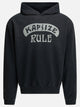 Felpa con cappuccio "Kapsize Rule" Kapital, realizzata in cotone dall'aspetto compatto. La struttura presenta una silhouette regolare e lineare, con cappuccio fisso integrato e maniche lunghe. Dettaglio distintivo costituito dalla stampa grafica frontale. Finiture a costine applicate su polsini e bordo inferiore, che assicurano stabilità alla forma e trattenuta. Tessuto dall'effetto morbido a contatto con la pelle.