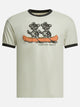 T-shirt "Ringer 'K' bear" Kapital realizzata in jersey di cotone. Costruzione con impunture visibili e finiture a costine su collo e fondo manica. La silhouette presenta spalle regolari e struttura semiaderente, che valorizza una vestibilità naturale. Il girocollo rinforzato e l'applicazione frontale contribuiscono alla definizione del capo, mentre la qualità del tessuto garantisce tenuta della forma nel tempo.