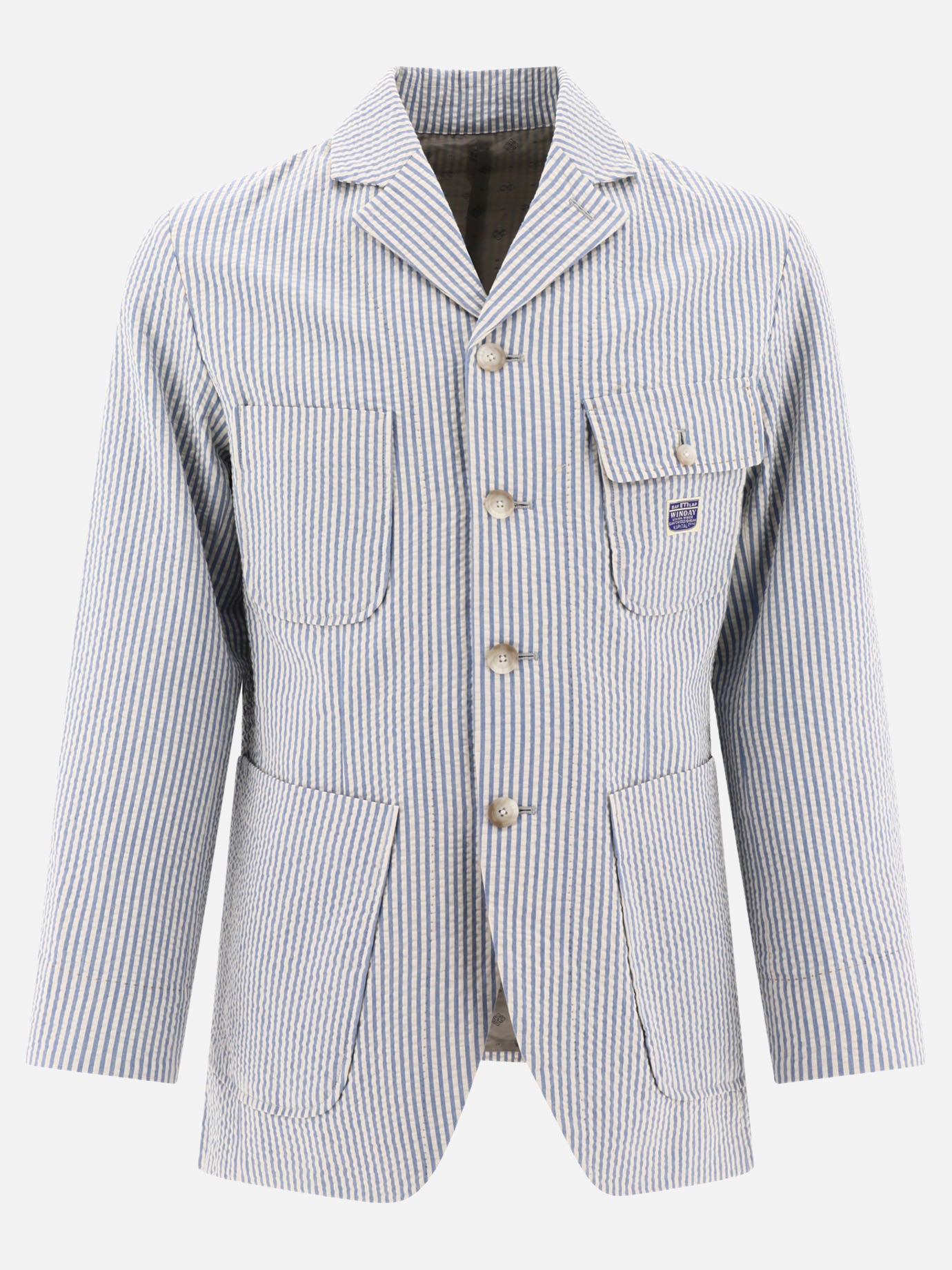 Scopri il fascino unico del Blazer "Soccer Stripe Lumber" di KAPITAL. Questo elegante blazer da uomo è realizzato in tessuto Seersucker, che conferisce uno stile sofisticato e contemporaneo. Caratterizzato da un motivo a righe verticali, è perfetto per aggiungere un tocco di classe al tuo guardaroba quotidiano.