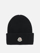 Berretto in cashmere e lana Moncler, costruito in maglia pesante con lavorazione a punto brioche. La struttura a finezza 3 definisce una silhouette morbida e avvolgente. Il filato, composto da misto lana vergine e cashmere, garantisce isolamento termico e texture uniforme. Un patch in feltro con logo applicato frontalmente identifica il prodotto. Perfetto per uomo e donna, con bordatura elasticizzata per una vestibilità stabile.
