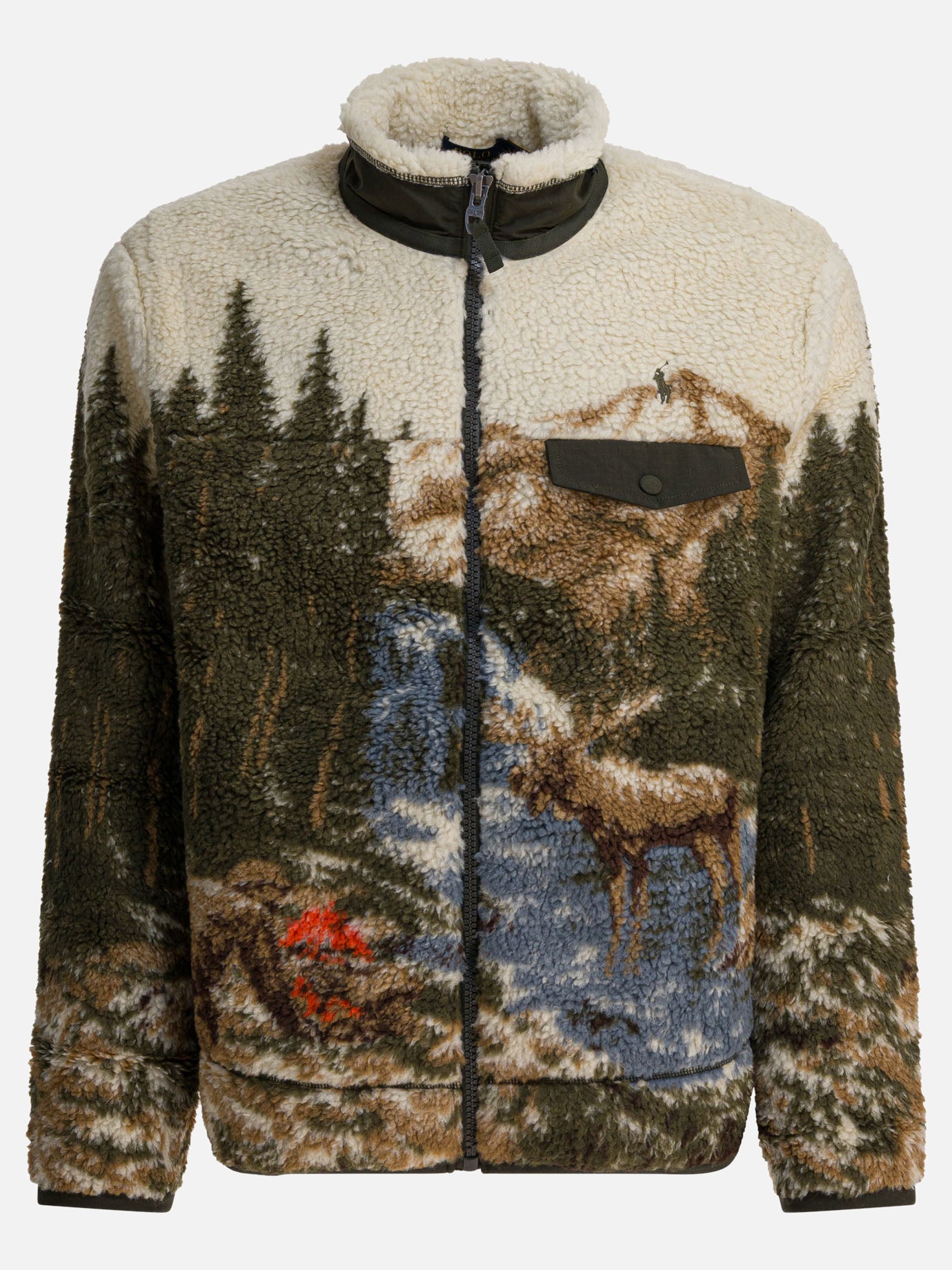 Giacca in pile "Scenic" Polo Ralph Lauren caratterizzata da costruzione in pile a pelo lungo accoppiato a interno in pile spazzolato a pelo corto. Struttura con collo a lupetto e inserto in ripstop che si estende fino alla chiusura con cerniera frontale. Sagoma dritta con maniche lunghe, bordura stretch su polsini e orlo inferiore. Il capo presenta tasca con pattina e automatico sul torace, due tasche frontali con cerniera e distintivo ricamo del pony sul petto.