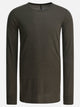 T-shirt girocollo in viscosa Rick Owens con struttura leggera e silhouette allungata. Il tessuto principale garantisce una superficie liscia e definita, mentre l'orlo taglio a vivo aggiunge un dettaglio netto alla finitura. Le maniche lunghe sono cucite con costruzione lineare, senza interruzioni decorative. Il collo presenta rifinitura sottile, mantenendo la linea pulita e minimale. Adatta a sovrapposizioni o come strato singolo in totale semplicità.
