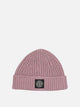 Berretto in lana mouliné Stone Island, realizzato con filato mouliné a finezza 3. La struttura presenta una silhouette aderente, con risvolto a costine posizionato nella parte inferiore. La lavorazione evidenzia la texture irregolare del tessuto, mentre la patch con logo Compass applicata sul davanti ne definisce l'identità. Il modello mantiene una costruzione compatta, favorendo aderenza e copertura uniformi.