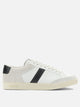 Sneaker "Blake" Tom Ford, costruita in camoscio a grana fine con inserti in pelle liscia applicata su zone strutturali. La tomaia presenta una silhouette dalla linea essenziale, evidenziata da cuciture minimal e sovrapposizioni tono su tono. La suola in gomma sagomata è unita saldamente alla parte superiore tramite una lavorazione incollata che garantisce continuità tra i materiali e solidità nella struttura complessiva.