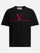 T-shirt "Made in Valentino" Valentino realizzata in cotone, caratterizzata da una silhouette regular fit. La costruzione presenta un girocollo a costine e maniche corte, con una struttura lineare e cuciture essenziali. Sulla parte frontale è posizionata una stampa con la dicitura "Made in Valentino". Il tessuto principale garantisce una superficie uniforme. La forma dritta segue la linea del busto senza risultare aderente né ampia.