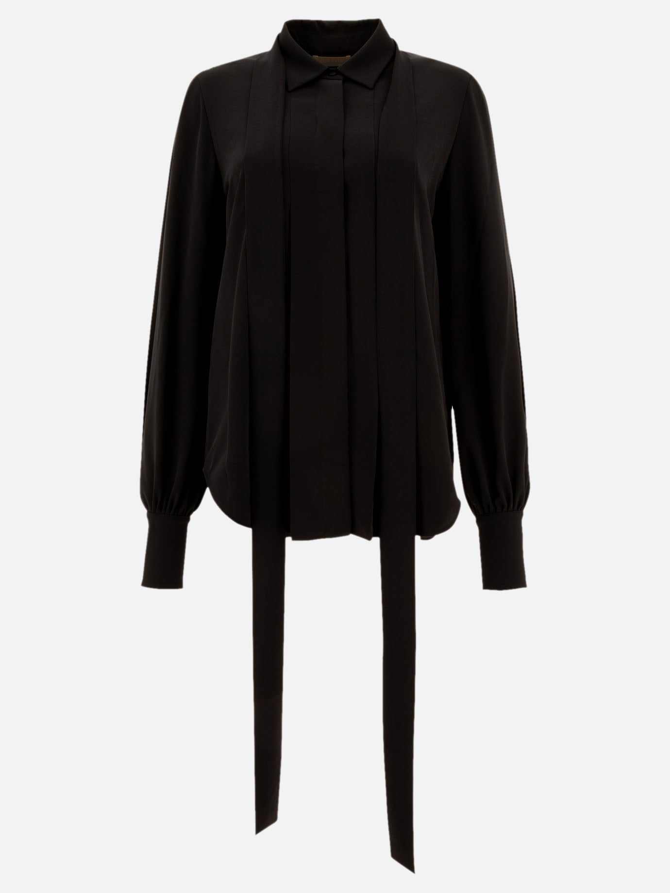 La camicia in crêpe leggero di Elie Saab è un capo elegante e versatile, perfetto per la donna che desidera un tocco di raffinatezza nel suo guardaroba. Realizzata in tessuto tinta unita, questa camicia presenta un design sofisticato che ne esalta la vestibilità e lo stile. Le maniche lunghe e la possibilità di annodare un fiocco sul davanti rendono questo capo unico nel suo genere.