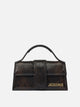 Borsa a mano "Le Bambino" Jacquemus, realizzata in pelle martellata dalla struttura compatta. Il modello presenta un manico superiore imbottito e una silhouette geometrica. La chiusura magnetica a patta assicura una tenuta pratica. Logo in metallo argentato applicato sulla patta, dettagli di impunture a vista e bordi tinti. Internamente, la fodera integrale è in cotone. Sul retro è presente una tasca applicata. Tracolla lunga amovibile con chiusura a moschettone incisa.