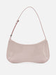 Borsa a spalla "Le Bisou" Jacquemus, costruita in pelle di vitello glacé con superficie liscia e struttura rigida. La silhouette compatta presenta una costruzione da bordo a bordo e una tracolla regolabile in pelle, dotata di fibbia e di dettagli a perline in metallo inciso. La chiusura superiore è una zip continua. L'interno include una tasca applicata in tessuto per riporre piccoli oggetti.