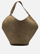Borsa a spalla "Lotus" Khaite, costruita con una struttura priva di rigidità interna, presenta una silhouette morbida che richiama le linee fluide di una sciarpa. Il corpo principale in materiale leggero favorisce la portabilità, mentre la base arrotondata garantisce maggiore stabilità. I manici integrati permettono comodità nell'indosso a spalla, evidenziando una costruzione essenziale pensata per l'utilizzo quotidiano.