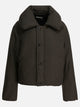 Piumino imbottito in piuma Lemaire realizzato in un tessuto misto lino e cotone con trattamento idrorepellente. La costruzione presenta una silhouette dal taglio dritto, stretto in vita, con fodera e trapuntatura interne. Il capo si caratterizza per il collo a palloncino dotato di cinturino sottogola, chiusura frontale combinata con cerniera e bottoni, maniche lunghe e polsini elasticizzati.
