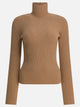 Maglione dolcevita in lana e cashmere Max Mara, realizzato in filato elasticizzato di lana, cashmere, poliammide ed elastan. La costruzione a costine avvolge la silhouette, valorizzando la linea aderente. La struttura presenta un collo alto definito e maniche lunghe, con una mezza zip funzionale sul retro del collo, dotata di cursore smaltato personalizzato Max Mara. La lavorazione a coste garantisce solidità e tenuta della forma nel tempo.