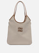 Borsa a spalla "Ivy" Miu Miu, realizzata in nappa dalla lavorazione invecchiata, presenta una silhouette definita da linee morbide e struttura semirigida. I manici sono costruiti in pelle e fissati alla struttura con dettagli metallici dorati. L'interno è rifinito in tessuto di cotone e integra una tasca con chiusura zip. La zona frontale ospita il logo lettering applicato in pelle.