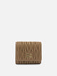 Portafoglio in pelle con logo Miu Miu, realizzato in pelle matelassé con struttura compatta e silhouette rettangolare. La superficie presenta una texture tridimensionale creata dalla lavorazione caratteristica del marchio. Il modello è dotato di una chiusura a bottone a pressione, logo lettering in metallo applicato all'esterno e una disposizione interna che suddivide gli scomparti e ottimizza la capienza degli slot e delle tasche.