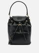 Mini zaino in pelle Miu Miu, realizzato in morbida pelle liscia con struttura compatta e silhouette lineare. La costruzione comprende spallacci regolabili, manico superiore e tracolla in pelle, che consentono differenti modalità di trasporto. La chiusura a pattina con fibbia assicura l'accesso al comparto principale, mentre la tasca frontale con zip permette di organizzare gli oggetti essenziali. Le finiture in metallo completano la struttura funzionale.