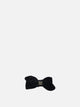 Fermaglio a fiocco in velluto Miu Miu, costruito con una base rigida rivestita in velluto, presenta una struttura stabile e una silhouette definita dal profilo voluminoso del fiocco. Il corpo principale unisce una texture morbida all'elemento metallico del logo lettering a contrasto applicato su una delle estremità. Il fissaggio è affidato a un meccanismo interno integrato nella struttura, pensato per assicurare una tenuta stabile sui capelli.