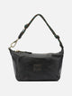Borsa a spalla in velluto con logo Miu Miu, caratterizzata da una costruzione in velluto a coste che definisce la silhouette compatta. Il manico è realizzato in nastro tecnico a doppia tonalità ed è fissato tramite moschettone metallico. La chiusura superiore con zip protegge l'interno foderato in tessuto. Il logo lettering applicato in pelle sulla parte esterna distingue il modello e crea un dettaglio a rilievo.