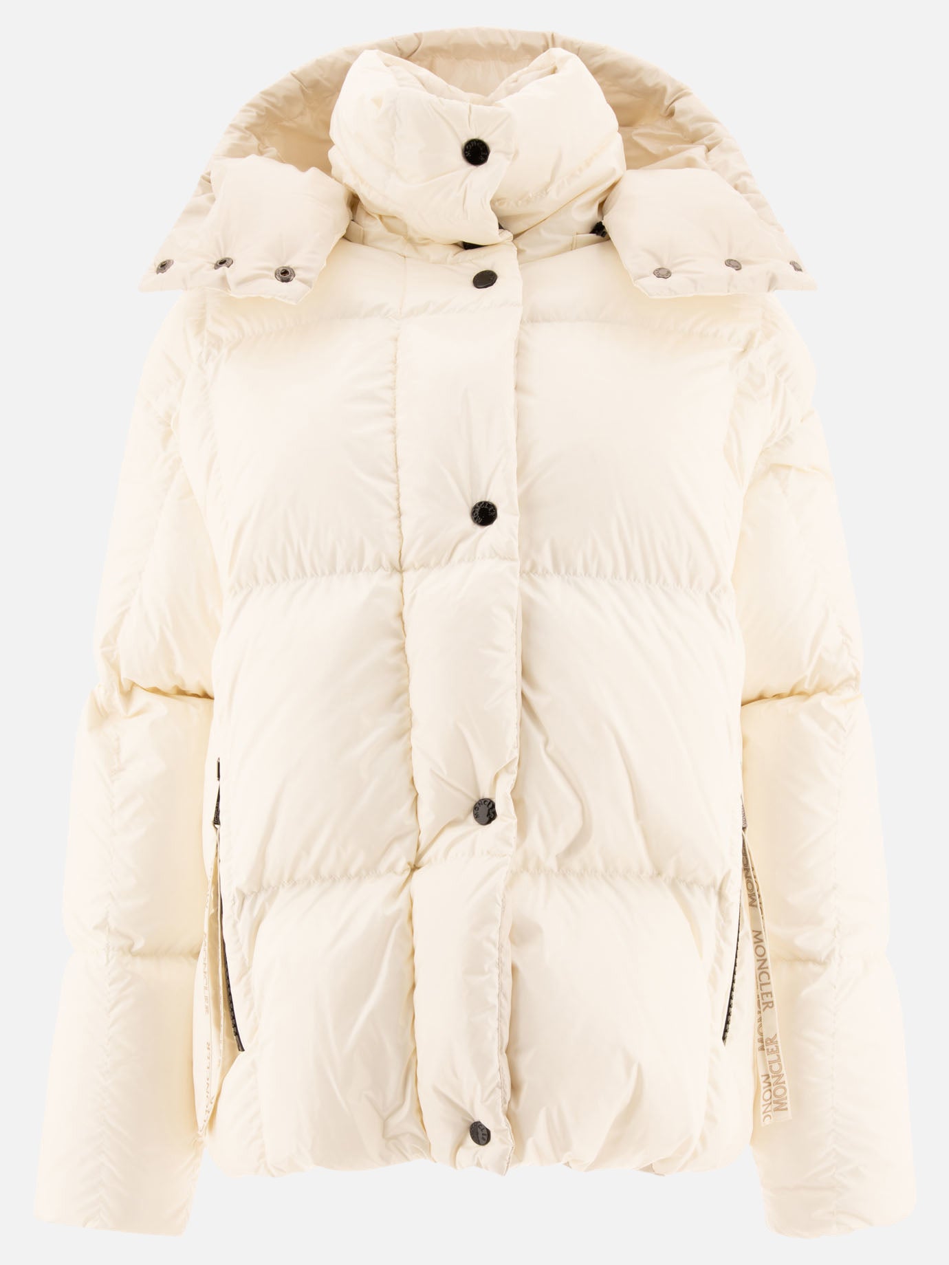 Piumino "Parana" Moncler. Il modello presenta una costruzione imbottitura trapuntata, realizzata interamente in nylon laqué lucido, con fodera nello stesso materiale. La giacca corta ha struttura regolare con cappuccio regolabile e rimovibile. La chiusura frontale combina zip e bottoni automatici. Polsi elasticizzati definiscono le maniche, mentre le tasche laterali sono dotate di zip. Logo applicato sulla manica.