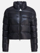 Piumino "Petra" Moncler. Realizzato in nylon super laqué idrorepellente, questo modello presenta imbottitura interna in piuma e piumino. La superficie è caratterizzata da una texture lucida e leggera. La costruzione corta e la silhouette compatta si associano a linee essenziali. La zip centrale, le tasche laterali con zip e la tasca sulla manica con bottone automatico completano la struttura. Il fondo regolabile tramite coulisse offre adattabilità.