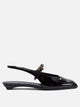 Le ballerine slingback in vernice di Prada incarnano l'eleganza moderna e raffinata, perfette per la donna che desidera unire stile e comfort. Il design essenziale e la linea modernista si sposano perfettamente con il finish lucido, rendendo queste calzature un classico senza tempo.