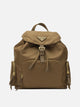 Zaino casual in Re-Nylon Prada con costruzione leggera e struttura compatta. Il corpo principale è realizzato in Re-Nylon, mentre i dettagli sono in pelle Saffiano. L'apertura superiore è regolata da coulisse, patta con magnete e chiusure con fibbia. La silhouette prevede una tasca frontale e una laterale entrambe con cerniera. La tracolla e i manici sono in nastro intrecciato regolabile. Fodera interna in Re-Nylon con due tasche.