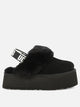Slipper "Funkette" Ugg, costruita con tomaia in camoscio, presenta silhouette slip on e struttura compatta. Fodera in montone da 10 mm che si estende anche alla soletta e collarino. La suola in EVA si combina con un plateau a strati che caratterizza il profilo. Il cinturino posteriore elastico con grafica Ugg mantiene il piede stabile. La forma mantiene elementi della classica Coquette.