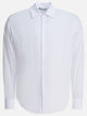 Altum cotton shirt, panel construction with linear texture. Compact regular-weave fabric. Classic collar with sharp profile and front button closure. Straight silhouette, shaped armholes. Riveted inside seams and regular hem. Cotton-based main fabric, smooth and even surface. Pattern designed to ensure dimensional stability during use.
