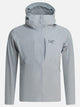 Arc'teryx "Gamma MX" technical jacket, made of Fortius 2.0 stretch softshell fabric, combines nylon and elastane to provide wind resistance, water repellency and breathability. The articulated construction provides a regular silhouette, with a helmet-compatible StormHood hood and optimal adjustment of protection without restricting vision. Technical details include low-profile contoured cuffs and zippered front pocket system.