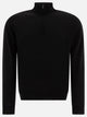 John Smedley merino wool "Tapton" half-zip sweater, made of extra-fine medium-weight merino wool, constructed from 24-gauge. The construction features a high collar closed with a short zipper, long sleeves and finished edges. The silhouette features a standard, untucked fit designed to fit with comfort and stability. The knit shows smooth surfaces, featuring a fine regular knit stitch texture.