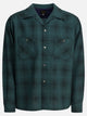 Needles check wool "One-Up" shirt made from wool main fabric features a long-sleeved construction with a classic collar. The construction includes two patch pockets on the chest, each with a button closure. Adjustable button cuffs and a yoke establish the fit along the back. The front closure uses a series of buttons in a vertical line.