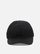 Prada Re-nylon trucker hat. Classic six-panel construction with contoured visor, reinforced construction and rigid profile. Made entirely of Re-Nylon, a recycled yarn that has undergone a purification process. Enameled metal triangular logo applied to the front of the cap is the only decorative element. Adjustable strap at the back with plastic snap closure. Lined interior with anti-sweat bands.