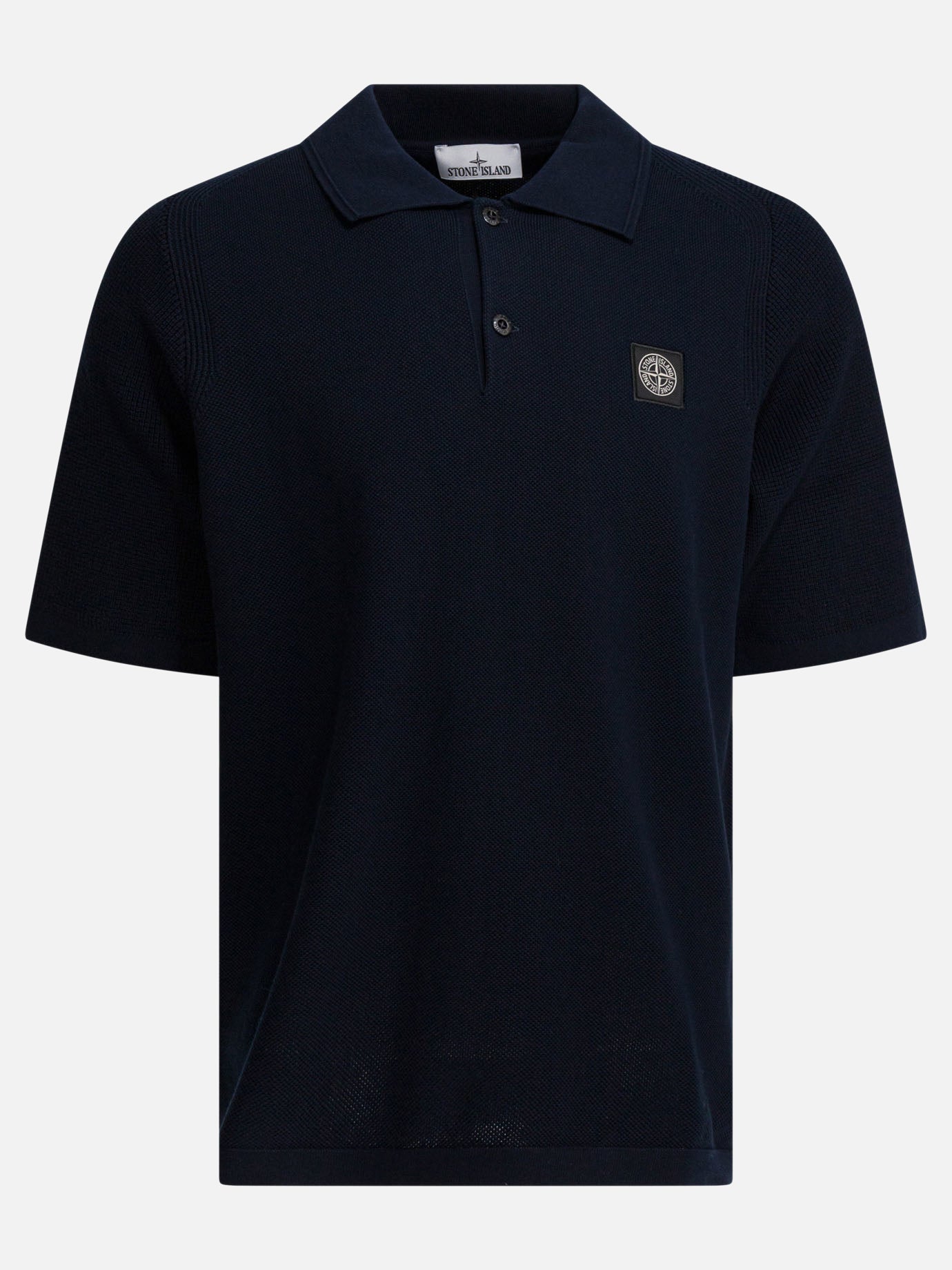 Polo con bottoni e logo Stone Island realizzata in cotone biologico a punto micro, caratterizzata da una struttura a manica corta e vestibilità loose. Collo in maglia a costine dotato di chiusura a due bottoni e dettaglio cresta in rilievo. Inserti a costine a contrasto su spalle e maniche. Polsini e fondo capo rifiniti a costine, con maniche raglan che seguono la linea naturale della spalla. Finezza 14.