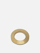 Alaïa "Blade" rigid bracelet, constructed of brass with a sculptural structure characterized by a tapered disc silhouette. The outer edge is defined by sharp lines that outline the profile of the accessory. The surface features uniform workmanship with no additional decorative elements, enhancing the nature of the metal. The inner diameter measures 64 mm, ensuring a fit adjusted by the rigidity of the structure.