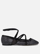 Jimmy Choo "Astoria" ballet flats, mesh construction with soft texture and square toe silhouette. Adjustable buckle ankle closure. Applied crystals decoration on strap. Smooth leather trim to define profiles and details. Logo screen-printed leather insole. Low profile and flat leather sole. Outer sole made of non-slip rubber.